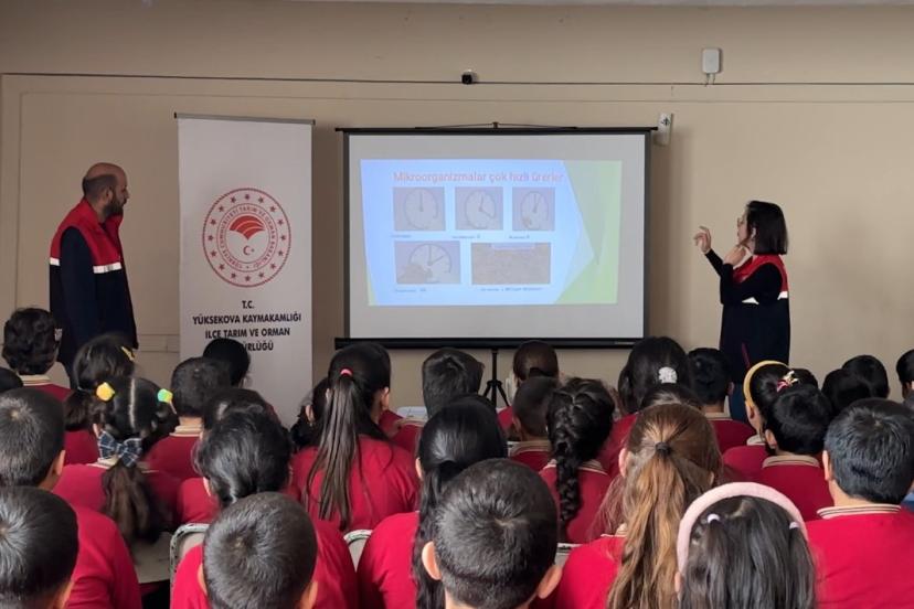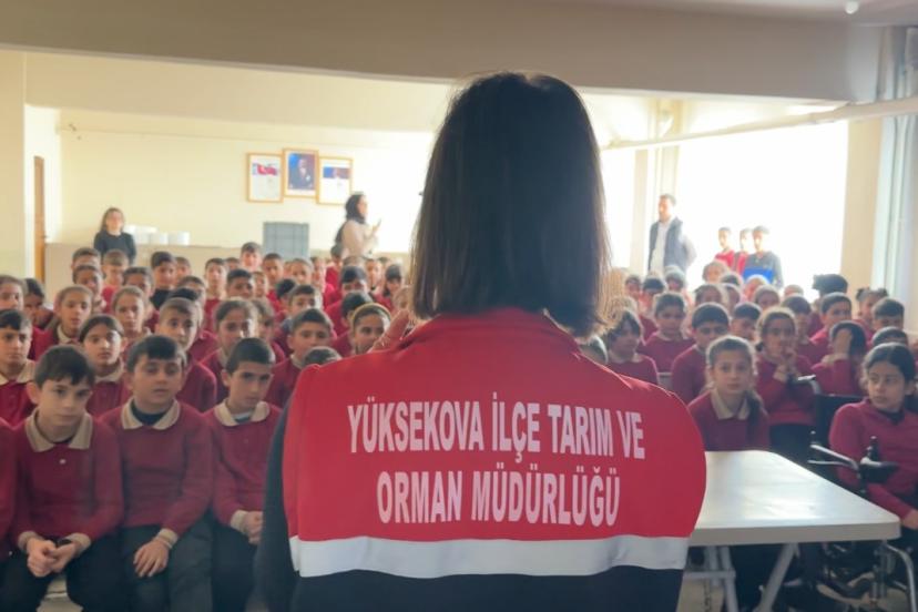 Yüksekova İlçe Tarım ve Orman Müdürlüğü ekipleri, "Güvenilir Gıda" ve "Sıfır Atık" bilincini aşılamak için rakım tanımayarak köy yollarına düştü. İlçe merkezine 20 kilometre uzaklıktaki 2 bin rakımlı Kısıklı köyüne ulaşmak için karla kaplı dik yamaçları yürüyerek aşan ekipler, adeta bir eğitim seferberliği başlattı. Köye ulaştıklarında öğrencilerin coşkusuyla karşılaşan ekip, teorik bilgiyi doğayla harmanladı. Eğitim kapsamında öğrencilere ‘tarladan sofraya hijyen, gıdanın güvenli yolculuğu, bilinçli tüketici, alışveriş yaparken nelere dikkat edilmeli, israfla mücadele, bir lokmanın bile çöpe gitmemesinin önemi’ gibi konular anlatıldı.