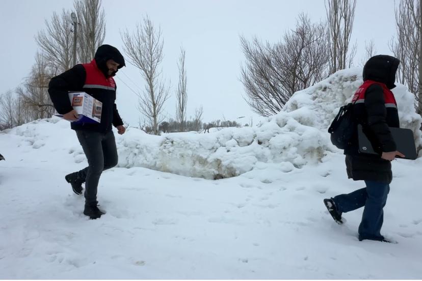 2 bin rakımda gıda seferberliği: Karlı yolları aşarak çocuklara bilgi taşıdılar