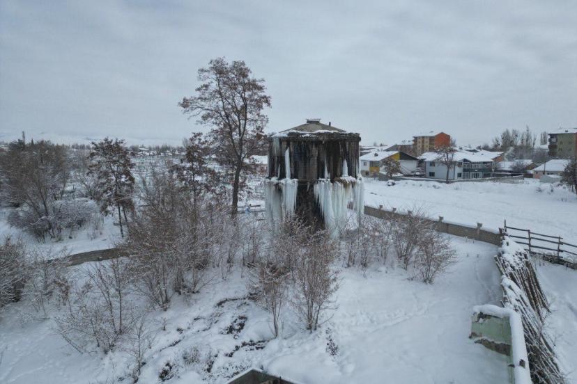 Sabah saatlerinde etkili olan karla karışık yağmurun ardından kent merkezinde çatılarda oluşan buz sarkıtlarının ve kaldırımlarda biriken buzların yavaş yavaş eridiği gözlemlendi. Kentte bulunan su deposunda oluşan dev buz kütlelerinin de erimeye başladığı görüldü.