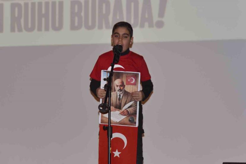 Ahlat Halk Eğitimi Merkezi Müdürlüğü konferans salonunda düzenlenen program, Vakıfbank İlkokulu ve Ertuğrulgazi Ortaokulu tarafından hazırlandı. Saygı duruşu ve İstiklal Marşı’nın okunmasıyla başlayan program, günün anlam ve önemini belirten konuşmayla devam etti. Daha sonra Mehmet Akif Ersoy’un hayatının anlatıldığı video gösterimi yapıldı. Ardından program, öğrenciler tarafından şiirlerin okunması, bayrak gösterisi ve oratoryo gösterileriyle devam etti.