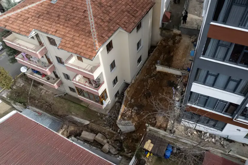 Ankara'nın Gölbaşı ilçesi Şafak Mahallesi 886'ncı Sokak'ta dört katlı bir apartmanın istinat duvarı gece saatlerinde çöktü.