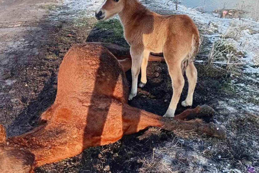 Edinilen bilgilere göre, Kura nehri kıyısında, etkili olan soğuk hava ve olumsuz doğa şartları nedeniyle güçten düşerek ölen at yanında yavrusuyla görüntülendi. Annesini kaybeden tay ise uzun süre onun yanından ayrılmadı.