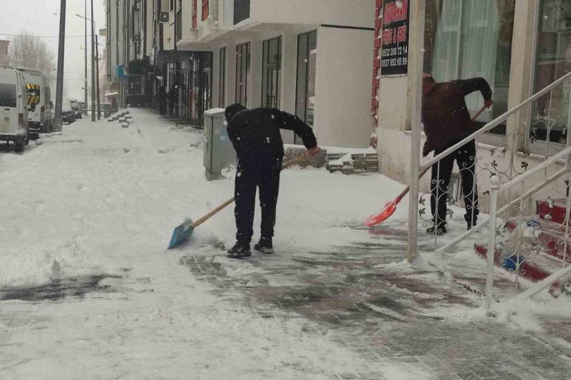 Gece saatlerinde etkili olan kar yağışının ardından sabahın erken saatlerinde cadde ve sokaklar beyaza büründü. Kent merkezinde kar kalınlığının artmasıyla birlikte esnaf, işyerlerinin önünde biriken karı temizlemek için harekete geçti.