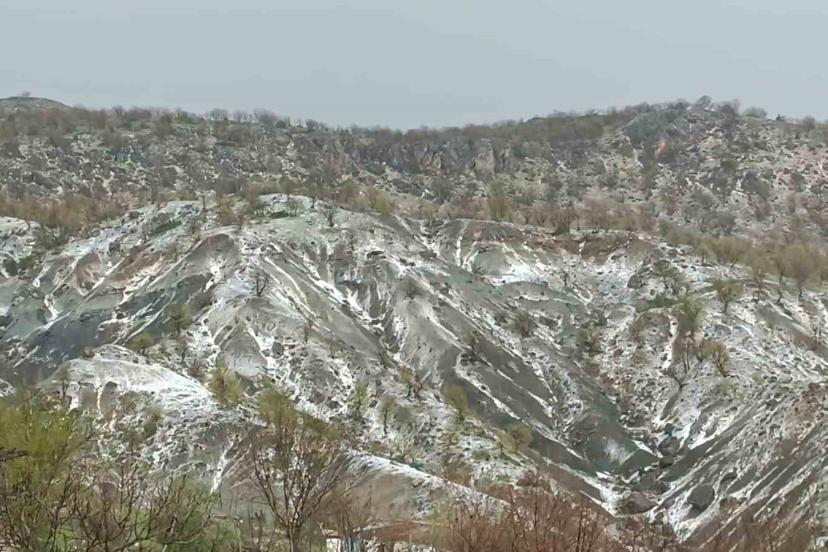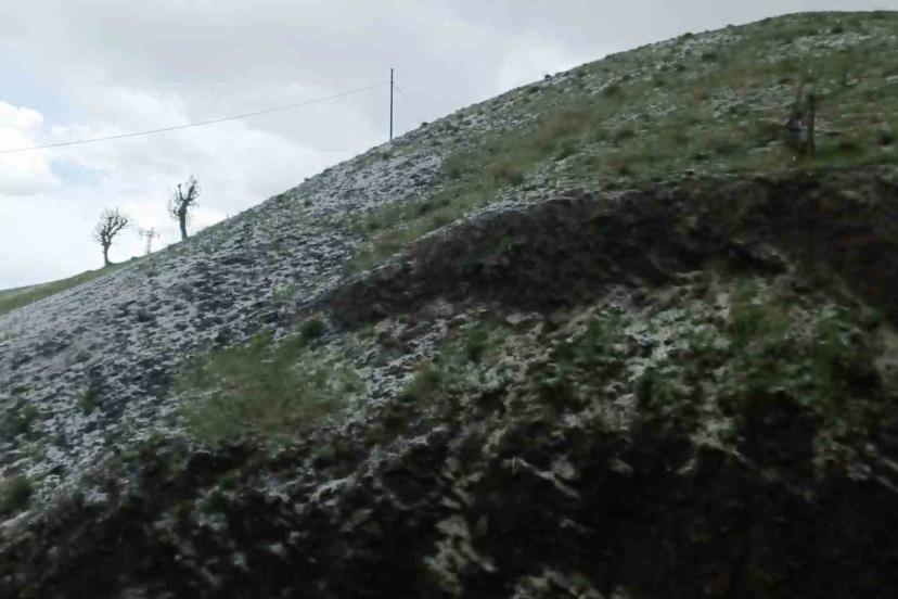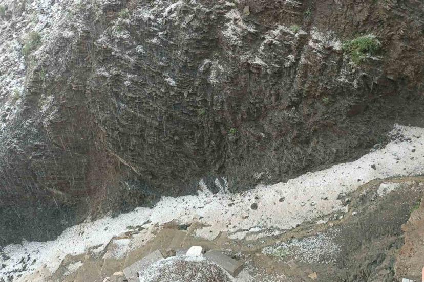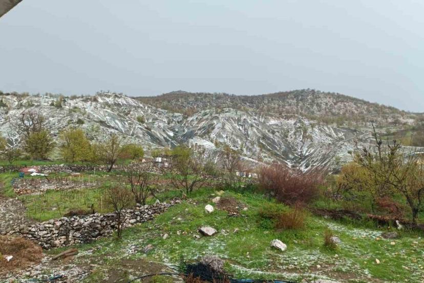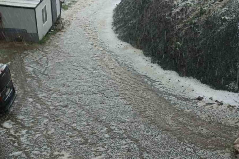 Elazığ’ın Arıcak ilçesinde sağanak ve dolu etkili olurken, ilçe kısa sürede beyaza büründü.