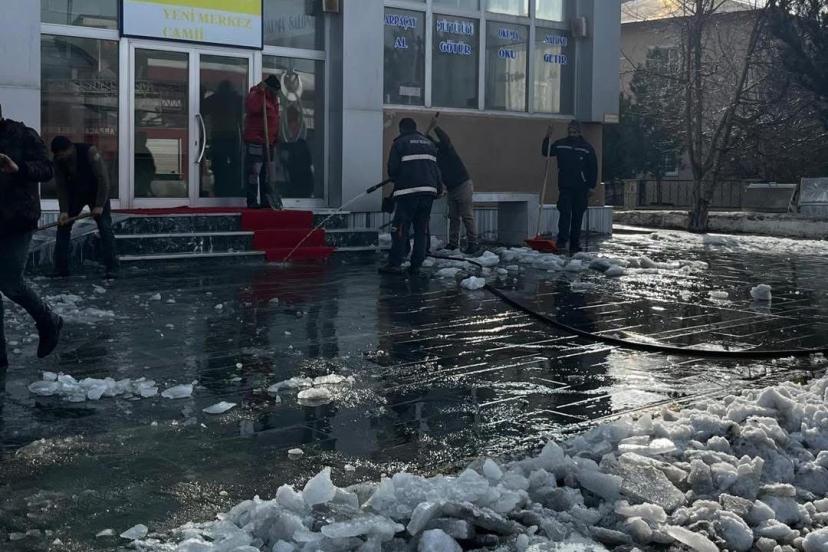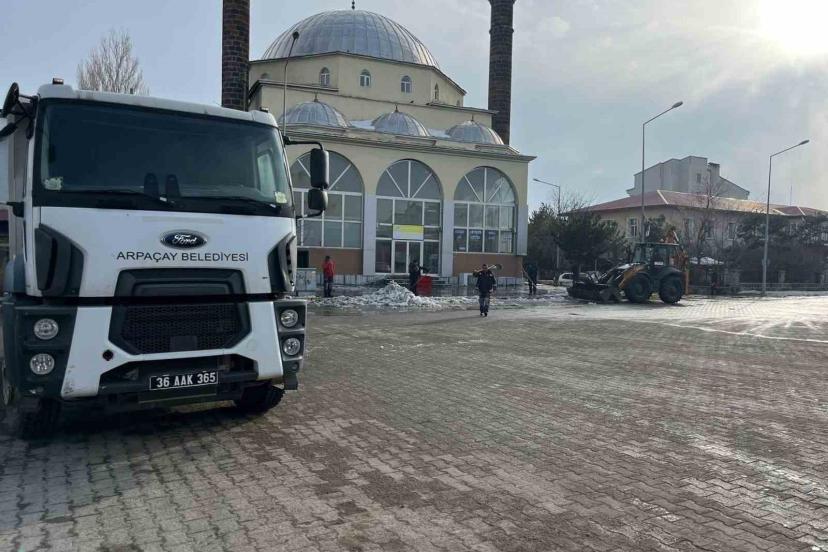 Arpaçay’da Ramazan öncesinde camilerde ve caddelerde temizlik çalışması yapılıyor.