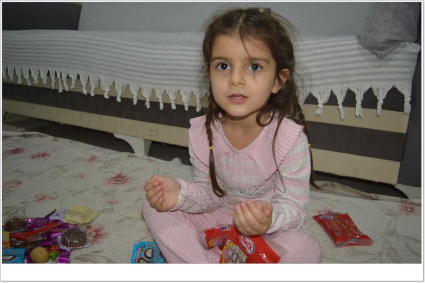 "Bugün Ramazan ayının ilk orucunu tutuyorum. Sekiz yaşındayım. Dün balonlar hazırladık, ‘Hoş geldin Ramazan’ yazdık. Kendimi çok heyecanlı hissediyorum. Sabah okula gittim, ders çalıştım. Öğle arasında eve geldim, sonra tekrar okula gittim. Beden dersimiz vardı, oyun oynadık. Sonra eve geldim. Akşam ezan okundu, yemeğe başladık. Ben, kardeşim Züleyha ve abim birlikte oruç tuttuk. Züleyha dört yaşında, o da tutabildi. Hiçbir şey yemedi. Annemle babama söylemiştim, beni sahura kaldırsınlar diye. Kendim oruç tutmayı istedim. Annem ve babam Ramazan’ın birinci gününde oruç tutmanın hayır olduğunu söylemişlerdi o yüzden ben de tutmak istedim.”