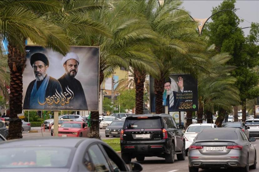 Başkentin birçok noktasına asılan posterlerin arasında İran destekli Iraklı Şii milis gücü Nuceba Hareketi lideri Akram Kaabi ile Mücteba Hamaney’in yan yana olduğu görseller de bulunuyor.