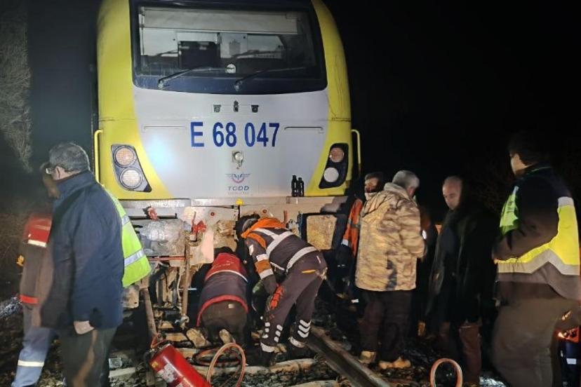 Balıkesir'in Savaştepe ilçesinde seyir halindeki bir yolcu treninin lokomotifi, hat üzerine düşen kaya nedeniyle raydan çıktı.