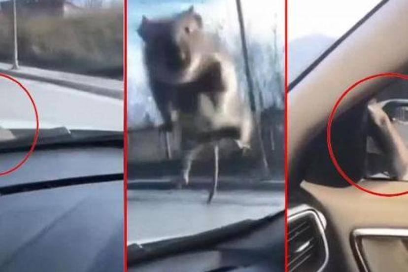 Olay, dün akşam saatlerinde Altınşehir Mahallesi'nde meydana geldi. İddiaya göre, Özel Merdivan otomobiliyle yolda seyir halindeyken, üst geçidin altından geçtiği sırada aracın camına fare atladı. Fare önce aynaya tırmandı ardından ön cama geçti. Bir süre sonra da ön camdan aracın tavanına tırmandı.