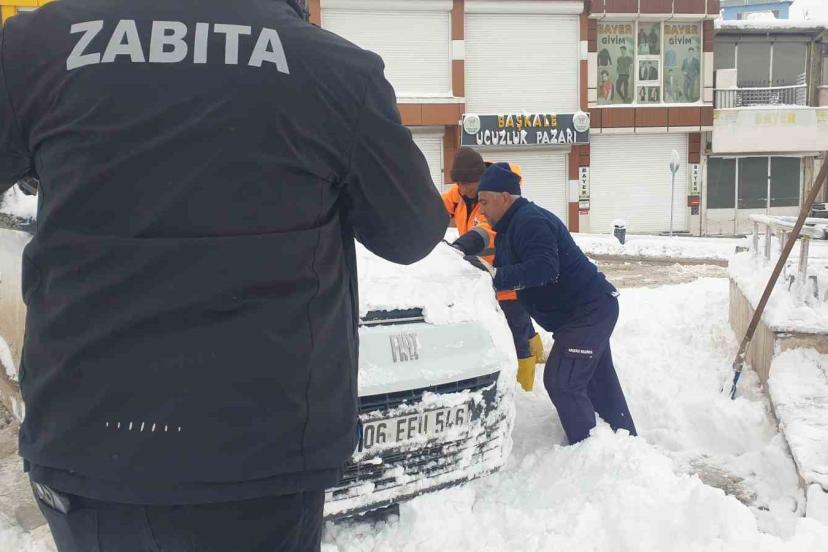 Van’ın Başkale ilçesinde etkili olan yoğun kar yağışı nedeniyle araçlar kar altında kalırken, 32 mahallenin yolu ise ulaşıma kapandı.