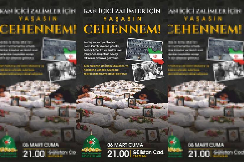 Peygamber Sevdalıları Vakfı Batman Koordinatörlüğü, siyonist işgal rejimi ve ABD'nin saldırılarına maruz kalan İran İslam Cumhuriyeti'ne destek amacıyla yarın kitlesel bir basın açıklaması düzenleyecek.