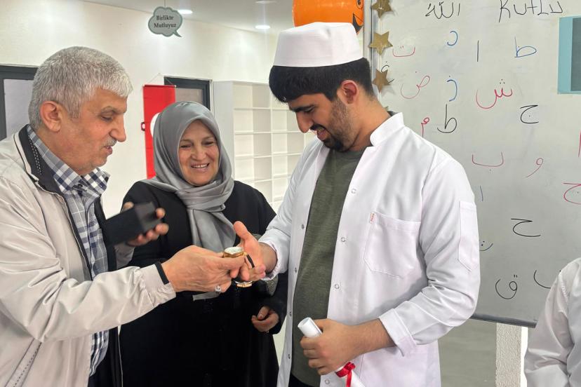 Kur'an kursuna katılan özel gereksinimli bireylerden Kur'an okumaya geçenler için gerçekleştirilen program, duygu dolu anlara sahne oldu.
