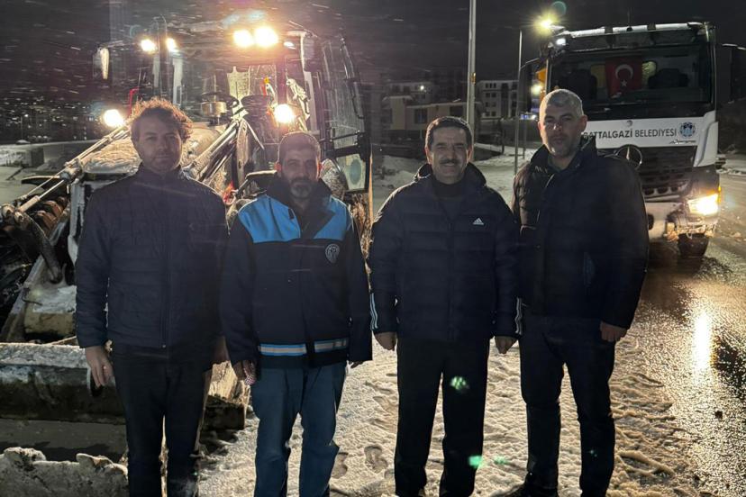 Battalgazi Belediye Başkanı Bayram Taşkın, gece saatlerinde etkili olan kar yağışının ardından sahaya çıkarak karla mücadele çalışmalarını takip etti.