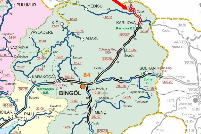 Bingöl Valiliğinden yapılan açıklamada "Bingöl-Erzurum Devlet Yolunun 0-28 km’leri arası yoğun kar yağışı ve tipi nedeniyle saat 08.40 itibari ile TIR trafiğine kapatılmıştır" denildi.