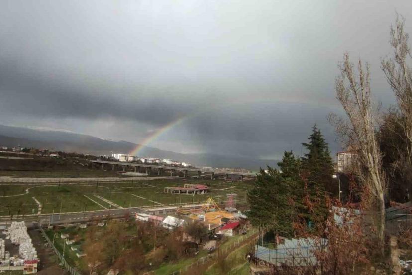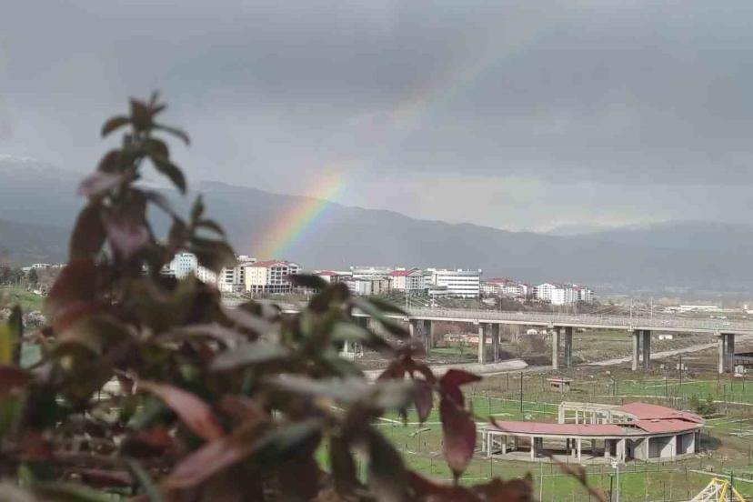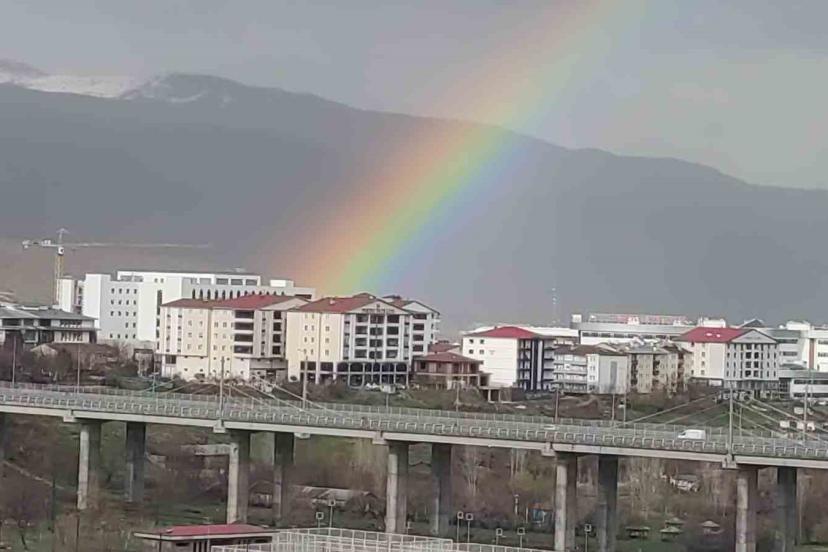 Bingöl’de yağış sonrası ortaya çıkan gökkuşağı, gökyüzünde adeta görsel bir şölen oluşturdu.