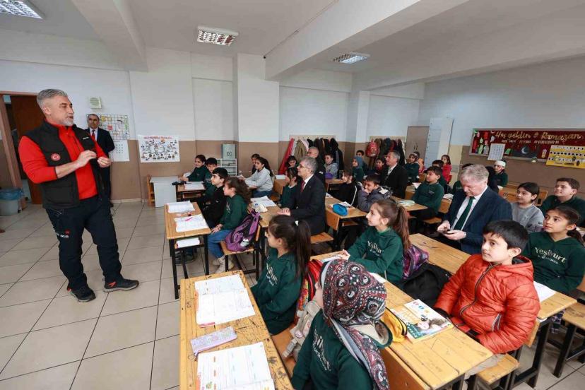 Vali Cahit Çelik’in katılımıyla Yeşilyurt İlkokulu’nda düzenlenen etkinlikte, MEB Arama ve Kurtarma Birimi (AKUB), Afet ve Acil Durum Yönetimi Başkanlığı (AFAD), itfaiye ve 112 Acil Sağlık ekipleri görev aldı. Program kapsamında öğrencilere deprem anında ve sonrasında yapılması gerekenler uygulamalı olarak anlatıldı.