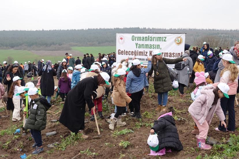 Törende bir konuşma yapan Bursa Orman Bölge Müdürü Erdal Şahan, "Ormanlar sadece doğal bir zenginlik değil, aynı zamanda güçlü bir ekonomik değerdir. Ormanlar, kırsal kalkınmayı destekleyen, istihdam oluşturan, toplumun refahına doğrudan etki eden stratejik bir öneme sahiptir. Bursa'da her yıl iki milyon fidan toprakla buluşuyor. Bugün 5 bin adet, Bursa genelinde de 18 bin adet fidanı toprakla buluşturuyoruz." diye konuştu.