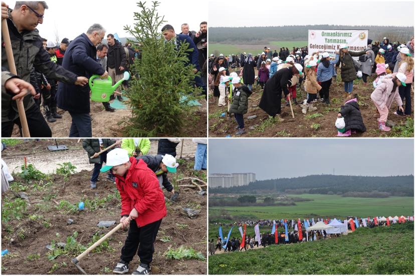Konuşmaların ardından programa katılan protokol üyeleri ve öğrenciler, belirlenen alanda fidan dikimi gerçekleştirdi.