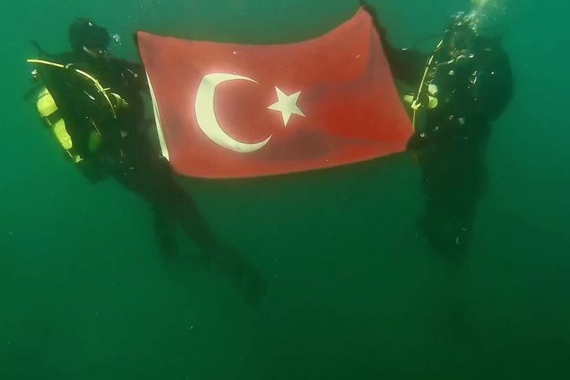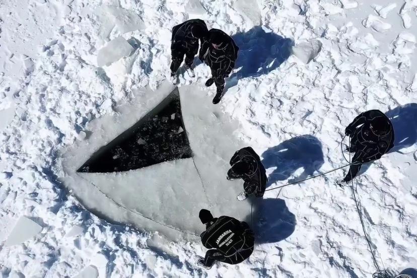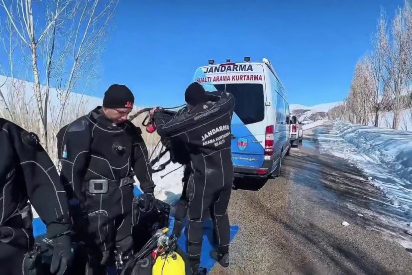 Ekipler buzla kaplı yüzeyi motorlu testere ile kesti ve nefes kesen bir dalış yaptı. Jandarma Genel Komutanlığı o anları sosyal medya hesabından paylaştı.