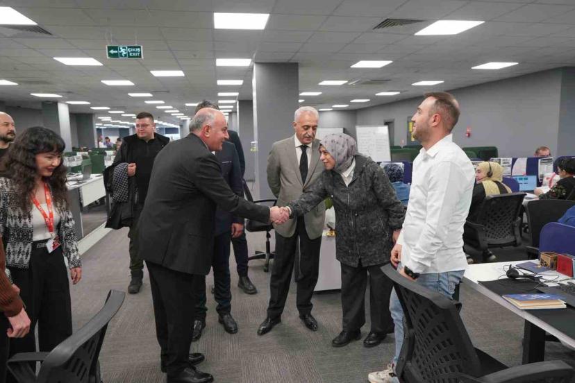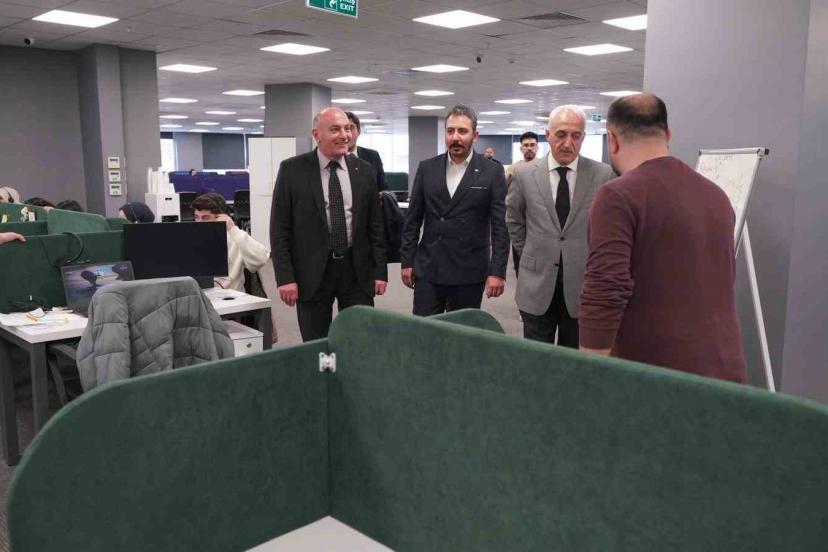 TOBB Yönetim Kurulu Üyesi ve ETSO Yönetim Kurulu Başkanı Saim Özakalın ile İŞKUR Erzurum İl Müdürü Abdulkadir Mutlu, beraberlerindeki heyetle birlikte çağrı merkezini ziyaret ederek yetkililerden bilgi aldı.