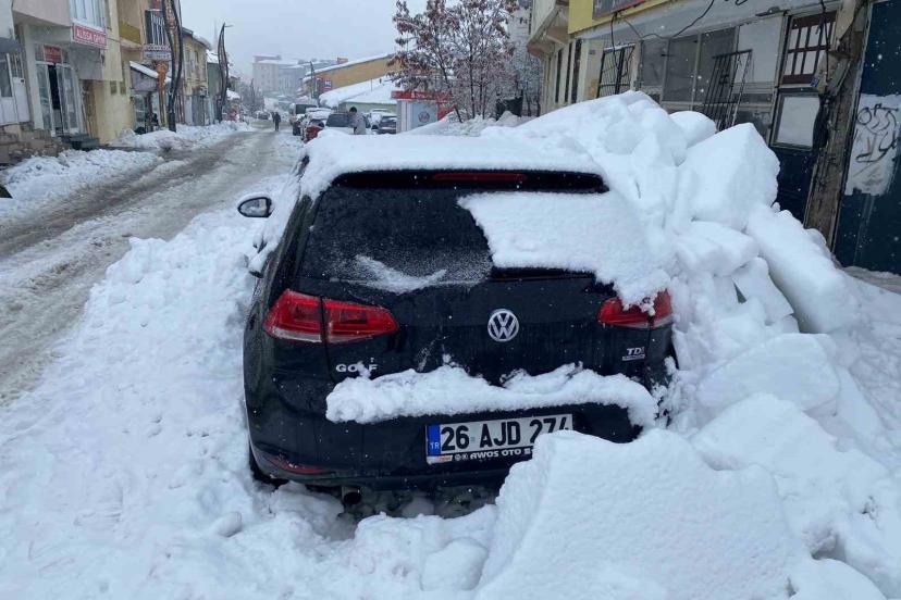 Bingöl’de çatından çözünen kar kütlesinin düşmesi sonucu park halindeki bir araçta maddi hasar meydana geldi.