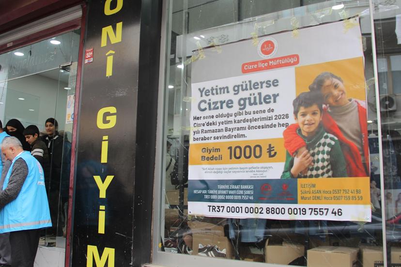 Şırnak’ın Cizre ilçe müftülüğü ve Türkiye Diyanet Vakfı’nın her bayram öncesi geleneksel hale getirdiği ve Cizreli hayırseverlerin de desteğiyle 10 yılında "Yetim gülerse Cizre güler" etkinliği ile bayram öncesi yetimlere giyim yardımı yapıldı.