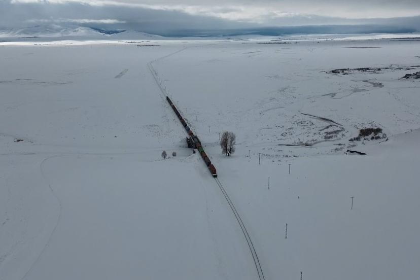 Bakü-Tiflis-Kars (BTK) demiryolu hattı, kış mevsiminin tüm güzelliğiyle birleşince ortaya eşsiz manzaralar çıktı. Orta Asya’nın derinliklerinden yüklenen vagonlar, Türkiye üzerinden Avrupa’ya uzanan binlerce kilometrelik yolculuğun en zorlu ve en görkemli etaplarından birini Kars’ta geride bırakıyor.