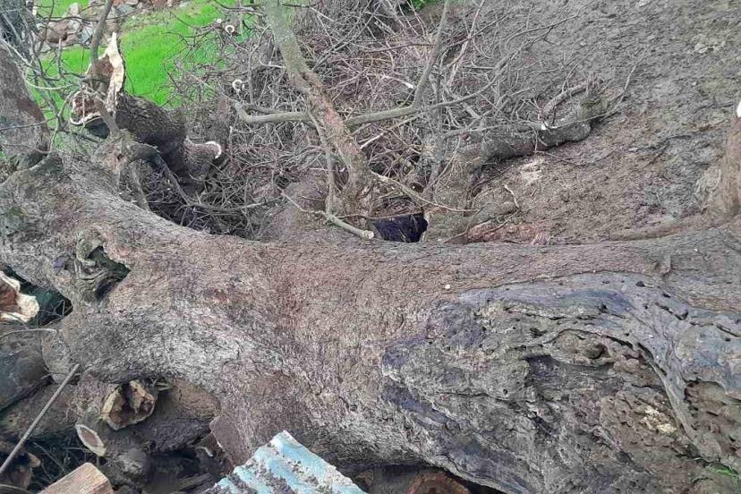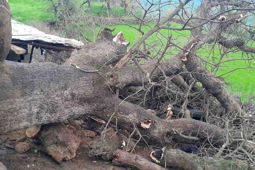 Yamaçtan kayan ağaç, İzzettin Ekinci’ye ait küçükbaş hayvan ağılının üzerine devrildi.