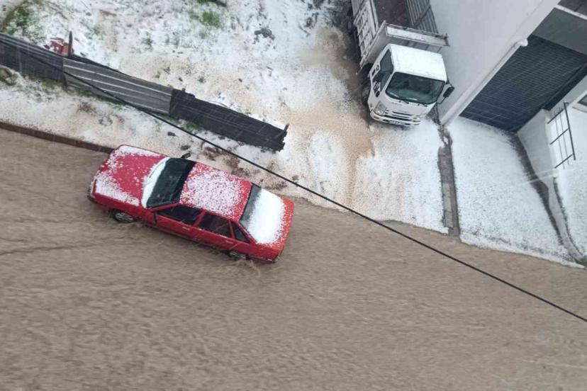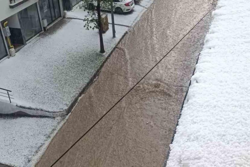 Meteorolojinin uyarıda bulunduğu Elazığ’da yağmurla birlikte dolu etkili oldu. Dolu sonrasında kentin birçok noktası beyaza büründü.
