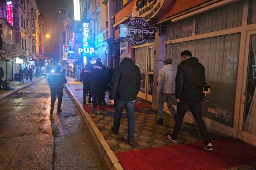 Elazığ İl Emniyet Müdürlüğü, genel güvenlik ve genel asayişin sağlanması, suça konu unsurların tespiti ve şüpheli şahısların yakalanmasına yönelik çalışmalarını aralıksız sürdürüyor. Bu çerçevede ekipler tarafından gece saatlerinde asayiş uygulaması gerçekleştirildi. Uygulama kapsamında, Hozat Garajı bölgesindeki eğlence mekanları ve araçlar denetledi. İşletmelerin yasal yükümlülüklere uygunluğu incelenirken, içerideki şahısların ise tek tek sorgusu yapıldı. Aynı zamanda bölgeden geçen araçlar ise durdurularak arandı.