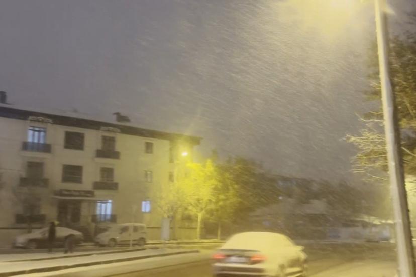Erzincan kent merkezinde gece saatlerinde başlayan kar yağışı aralıklarla devam ediyor.