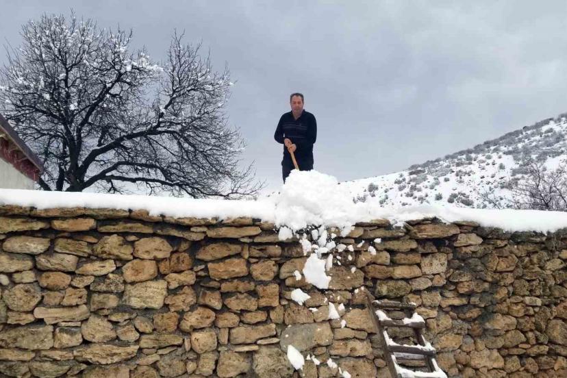 Bazı vatandaşlar biriken kar nedeniyle toprak damlı evlerin bacalarında temizlik yaparken, bazıları ise evlerinin önünde biriken karları temizleyerek geçiş yollarını açtı.