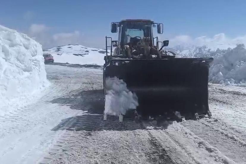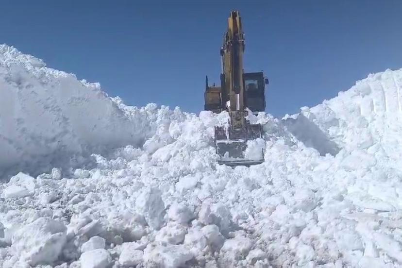 Yurt genelinde bahar etkisini sürdürürken, Tekman ilçesinde yaklaşık 2 bin 900 rakımlı bölgedeki şantiye alanına giden yolu açmak için ekipler aralıksız çalışıyor. Yüksekliği yer yer 6-7 metreyi bulan karla kaplı şantiye yolunu açmak için iş makineleri ile zorlu çalışma yürüttüklerini anlatan şantiye şefi Emre Öztürk, "Mayıs ayına girerken şantiyemizi devreye almak için karla kapalı yolu açmak için uğraşıyoruz. Şartlarımız zor ama gayretimiz bir an önce işimizi başlatmak" dedi.