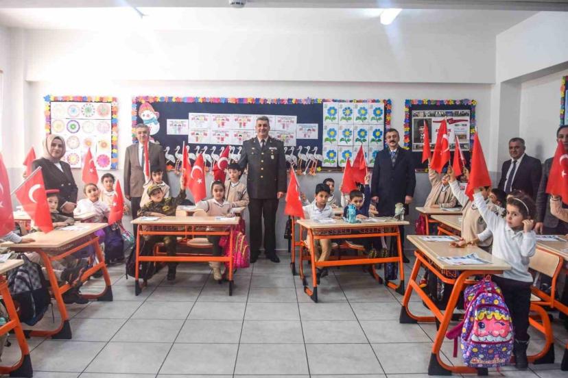 Vatan, millet ve bayrak sevgisini küçük yaşlarda pekiştirmeyi amaçlayan proje kapsamında, 1. sınıf öğrencileri sınıf öğretmenleri Fikriye Bezginoğlu liderliğinde hazırladıkları mektupları, sınırda ve zorlu koşullarda vatani görevini sürdüren Mehmetçiğe moral ve motivasyon vermek amacıyla 109. Topçu Alayı Komutanı Mümin Ertuğran’a teslim etti.