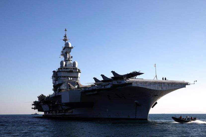 Yunan basınında çıkan haberlere göre Fransız uçak gemisi "Charles de Gaulle", sabah Girit Adası'ndaki Suda Deniz Üssü'nde bulunan K-14 iskelesine yanaştı.
