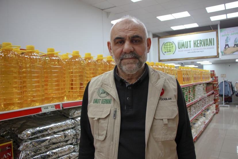 "Daha önceden Gaziantep'te ihtiyaç sahiplerine koliler götürüyorduk. Fakat şimdi yeni bir sisteme geçtik. Sistemimizde sosyal market adı altında faaliyetlerimizi yürüteceğiz. Sosyal market ne demek? Sosyal market bildiğiniz market türü bir çalışma. Daha önce gıda kolisi götürdüğümüz ailelere şimdi kart dağıtacağız. Aileler kendi kartlarını alıp sosyal marketimize gelecek. Burada kendi ihtiyaçlarını kendi elleriyle temin edecekler."