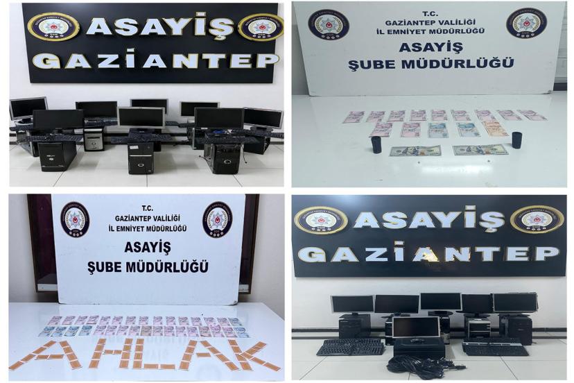 Gaziantep’te kumar oynanmasına yönelik yürütülen çalışmalar kapsamında çok sayıda şüpheli hakkında işlem yapıldı, iş yerleri kapatıldı ve yüklü miktarda para ile materyal ele geçirildi.