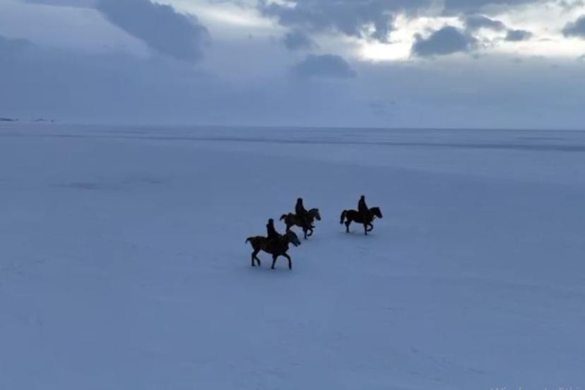 Çıldır Gölü’nde kışın büyüleyici atmosferi bir kez daha dikkat çekti. Yüzeyi tamamen donan gölün üzerinde atlarına binen gençler, dörtnala koşarak adeta doğayla iç içe nefes kesen anlara imza attı.