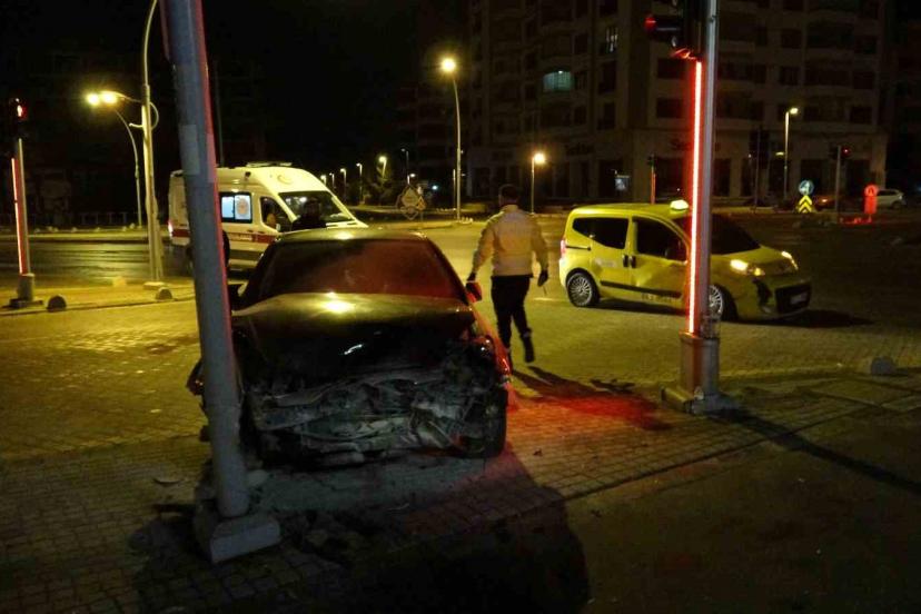 Malatya’da hafif ticari araçla çarpışan otomobil kaldırıma çıkarak durabildi.
