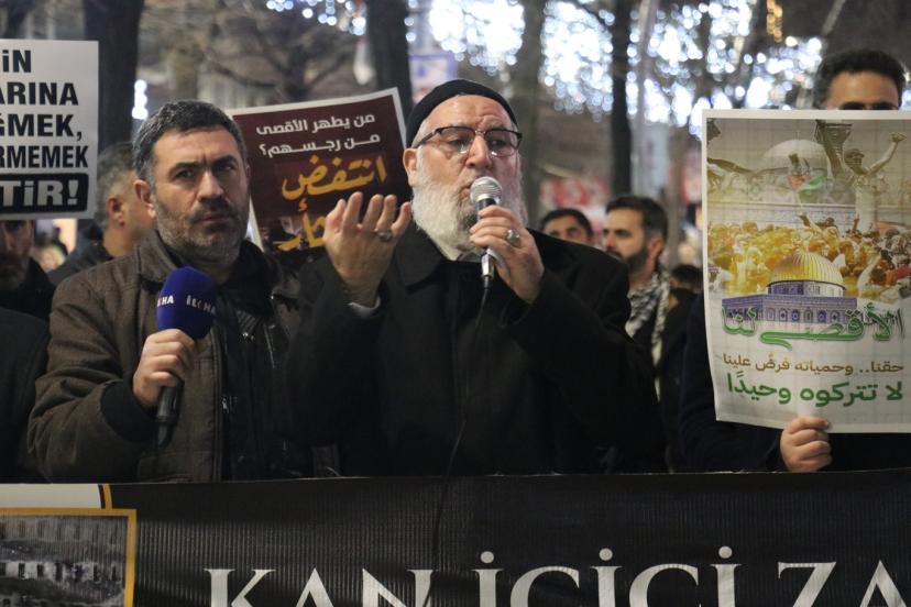 Teravih namazı sonrasında gerçekleştirilen protesto gösterilerinde yapılan konuşmalarda, Müslümanların mezhep farklılıklarını bir kenara bırakarak işgale karşı durmaları gerektiği ifade edildi.