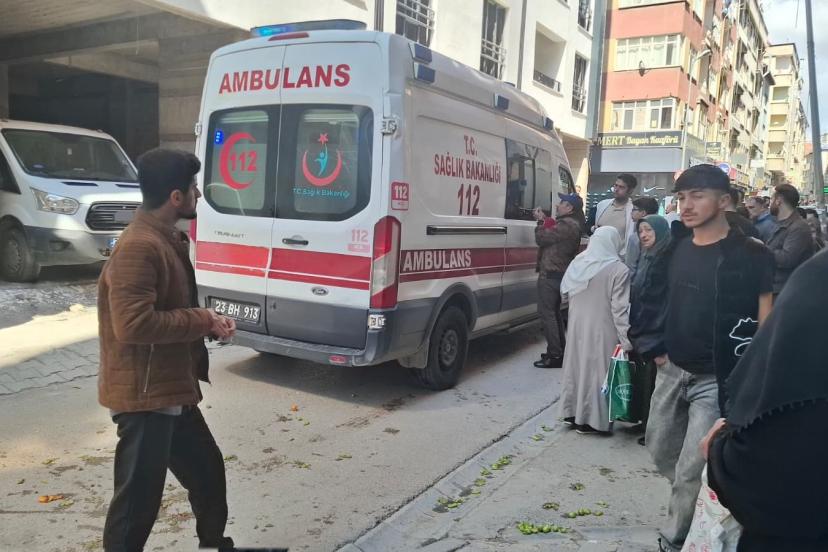 Elazığ’da manevra yapan iş makinesinin çarpması sonucu dengesini kaybederek yere düşen seyyar satıcı, sağlık ekiplerinin müda...