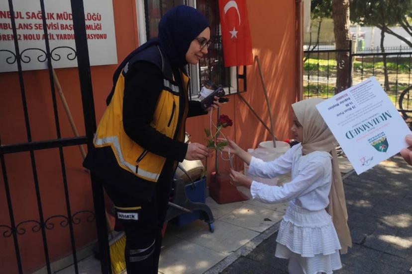 Peygamber Sevdalıları, İstanbul’da düzenlenecek olan Mevlid-i Nebi etkinliği için gül dağıtarak halkı kutlu sevdayı haykırmaya davet etti.