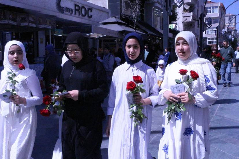 Şehrin birçok noktasında gezen anons araçlarıyla davet çalışmalarını sürdüren Peygamber Sevdalıları, etkinliğe saatler kala birçok ilçede halka yönelik gül dağıtıldı.