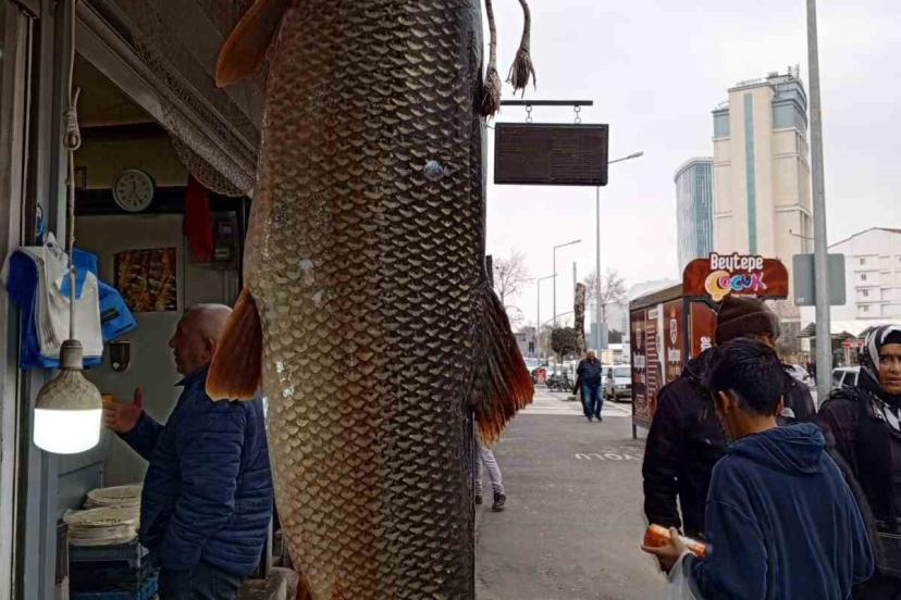 Malatya’da Karakaya Baraj Gölü’nde balıkçılar tarafından yakalanan 42 kilogram ağırlığındaki turna balığı tezgahta sergilendi. Dev balığı gören vatandaşlar tezgahın başında yoğunluk oluştururken, balıkçı Özcan Buluş turna balığının özellikle Mart ayında çıktığını ve yoğun ilgi gördüğünü söyledi.