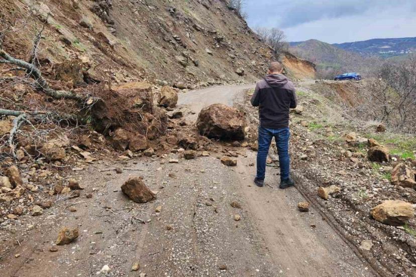 Elazığ’ın Karakoçan ilçesine bağlı Korudibi köy yolunda toprak kayması meydana geldi.