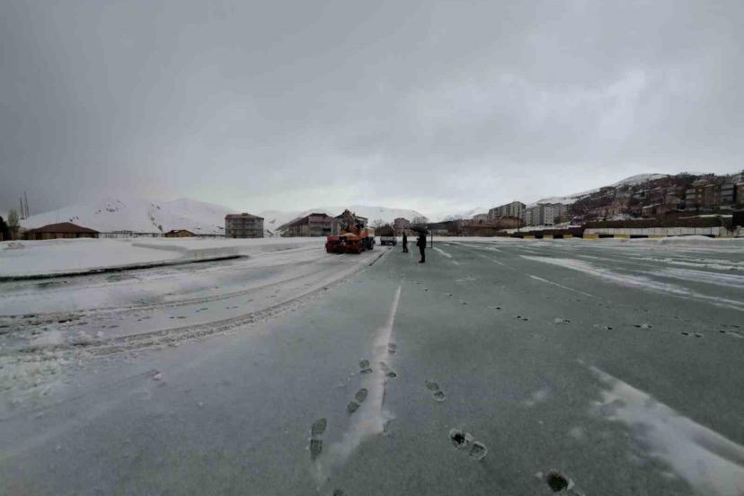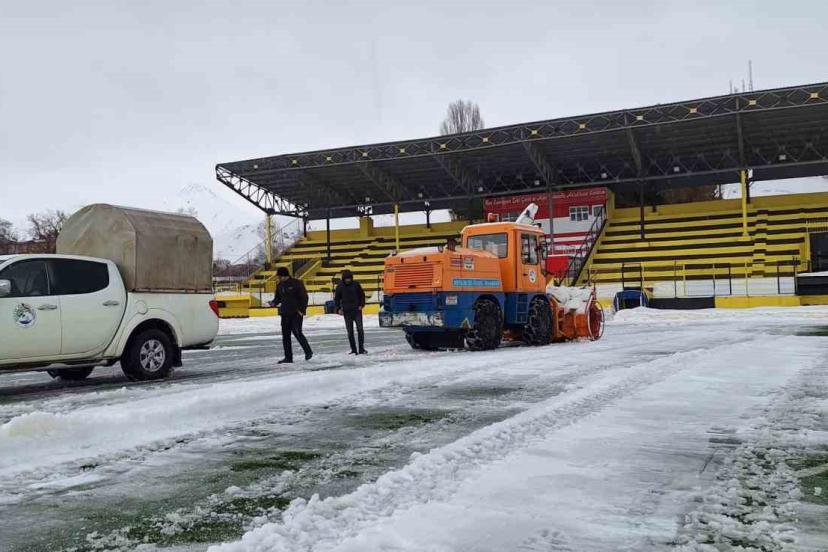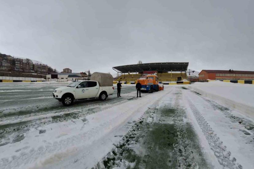 Kar yağışının ardından zemini tamamen kapanan stadyumda maçların oynanamaması üzerine harekete geçen ekipler, iş makineleri ve personel desteğiyle kapsamlı bir temizlik çalışması yürüttü. Yapılan hummalı çalışmalar sonucunda saha zemini ve tribün çevresi kardan arındırılarak sporcular ve kulüpler için güvenli hale getirildi.