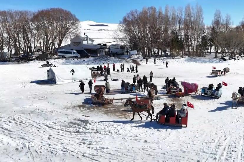Doğu Anadolu’nun saklı denizi olarak adlandırılan Çıldır Gölü, büründüğü beyaz örtüsüyle macera tutkunlarını ağırlamaya devam ediyor. Yaklaşık 70 santimetre buz kalınlığına ulaşan göl, atlı kızakların "dörtnala" safarisine sahne oluyor.