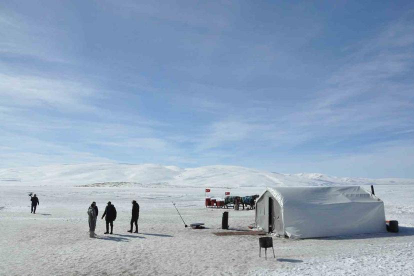 Doğu Anadolu’nun saklı denizi olarak adlandırılan Çıldır Gölü, büründüğü beyaz örtüsüyle macera tutkunlarını ağırlamaya devam ediyor.