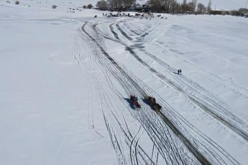 Kars Çıldır Gölü’nde dörtnala atlı kızak safarileri nefes kesiyor