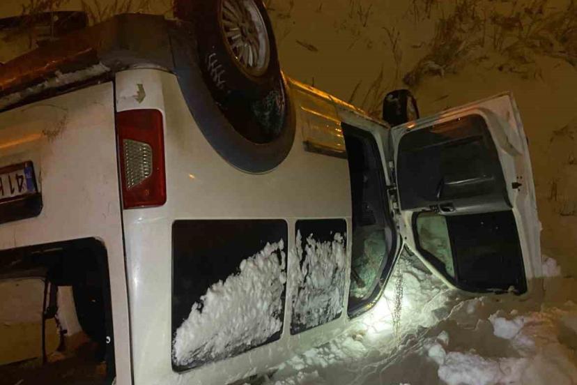 Kars’ta takla atan hafif ticari araçta can pazarı yaşandı